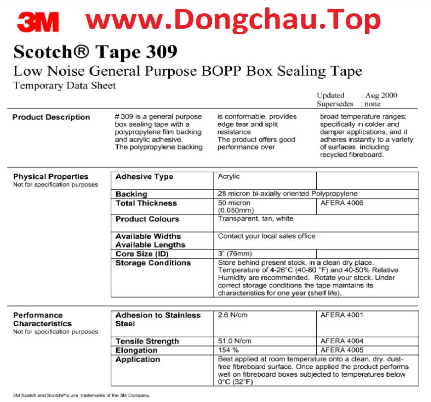 Đặc tính sản phẩm 3M 309 :